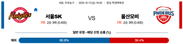 2025-10-17 19:00 KBL 서울 SK 울산 현대모비스