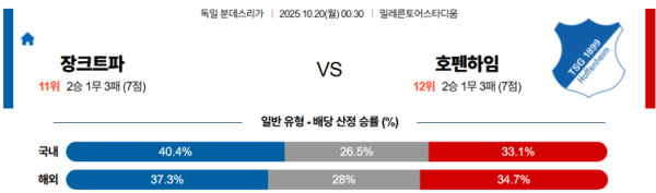 2025-10-20 00:30 분데스리가 FC 장크트파울리 TSG 1899 호펜하임