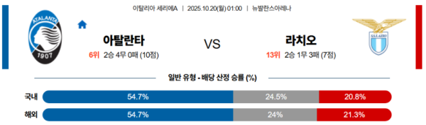 2025-10-20 01:00 세리에 A 아탈란타 BC SS 라치오