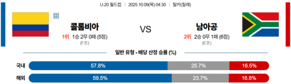 2025-10-09 04:30 U-20 월드컵 콜롬비아 남아공