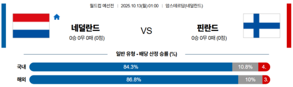 2025-10-13 01:00 월드컵 예선전 네덜란드 핀란드