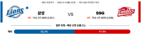 그러나 가을야구에서 각성한 원태인과 아직 100% 컨디션이 아닌 앤더슨의 선발 매치업을 고려하면,삼성이 상성에서 우위를 보이며 경기를 가져갈 가능성이 높다.