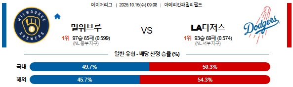 2025-10-15 09:08 MLB 밀워키 vs LA다저스