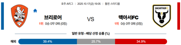 2025-10-17 19:05 호주 A리그 브리즈번 로어 FC 맥아서 FC